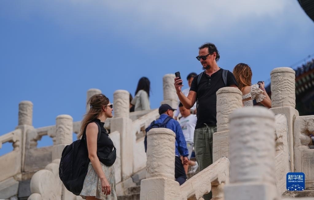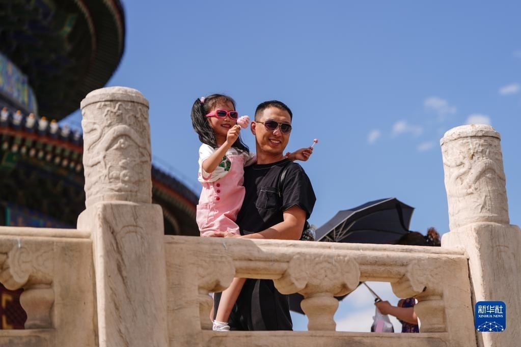 6月9日,游客在天壇祈年殿游覽。