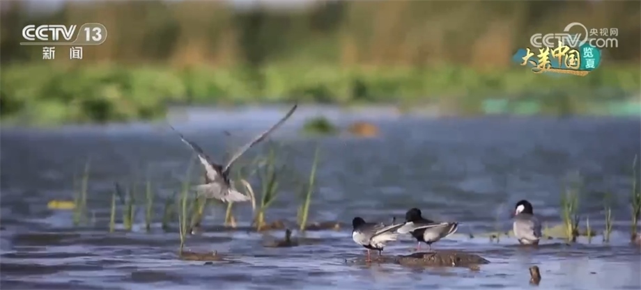 現(xiàn)在我們來(lái)到位于河北雄安新區(qū)安新縣白洋淀濕地,這里岸邊花香撲鼻、水波蕩漾、鷗鷺齊飛,在剛剛修復(fù)完工的藻苲淀,39座大小島嶼中有兩座還成為了鳥類保護(hù)的棲息地。