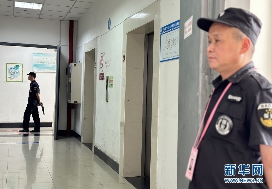 全國統(tǒng)考科目西南大學(xué)評卷點(diǎn),安保人員正在執(zhí)勤。新華網(wǎng) 彭浩然 攝