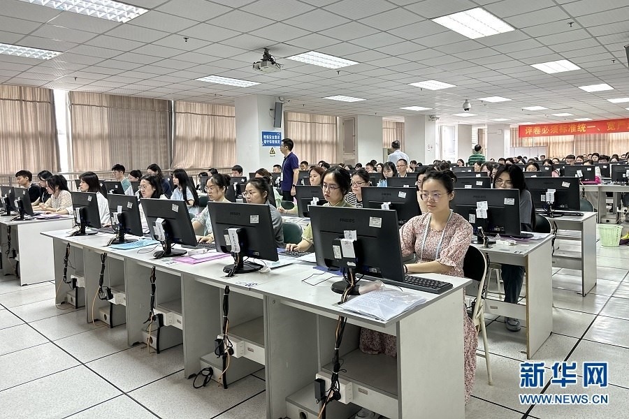 6月13日,全國統(tǒng)考科目西南大學(xué)評卷點(diǎn),評卷教師正在閱卷。新華網(wǎng) 彭浩然 攝