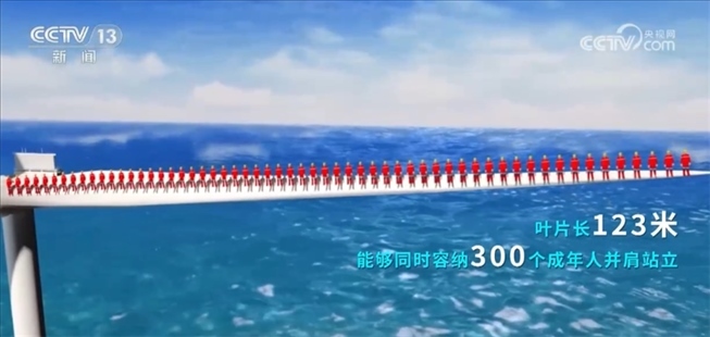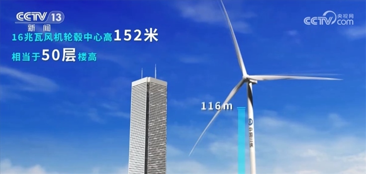 剛才我們看到的葉片只是風電機組的一部分,那么這臺16兆瓦超大容量海上風電機組整體有多大?它的發(fā)電能力如何?我們一起通過一組數字更直觀地了解它。