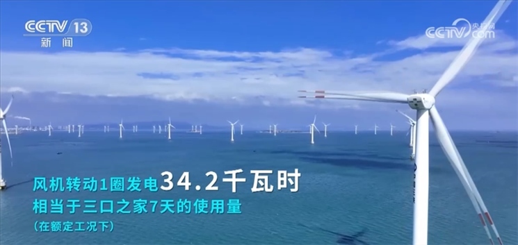 風機轉動1圈發(fā)電34.2千瓦時,相當于三口之家7天的使用量(額定工況下),1小時發(fā)電1.6萬千瓦時,相當于每分鐘發(fā)電267千瓦時(額定工況下)。