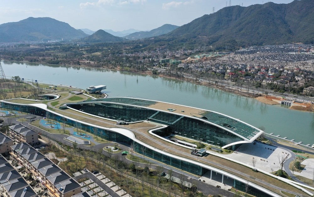 2022年3月11日拍攝的富陽水上運動中心(無人機照片)。新華社記者 徐昱 攝