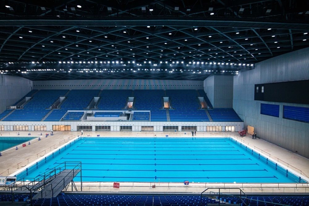 杭州奧體中心游泳館可容納觀眾6000人,設有比賽池、跳水池、熱身池等五個水池,將舉辦杭州亞運會游泳、跳水和花樣游泳三項比賽,決出53枚金牌,是杭州亞運會產(chǎn)生金牌最多的場館。