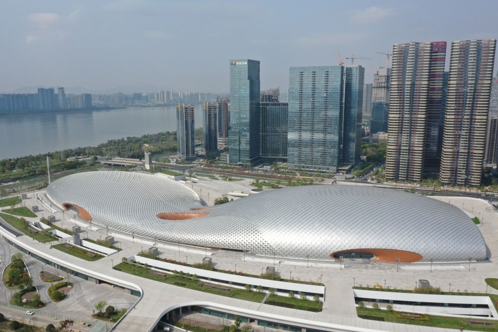 2021年8月2日拍攝的杭州奧體中心場館群(無人機照片)。新華社發(fā)(杭州亞組委供圖)