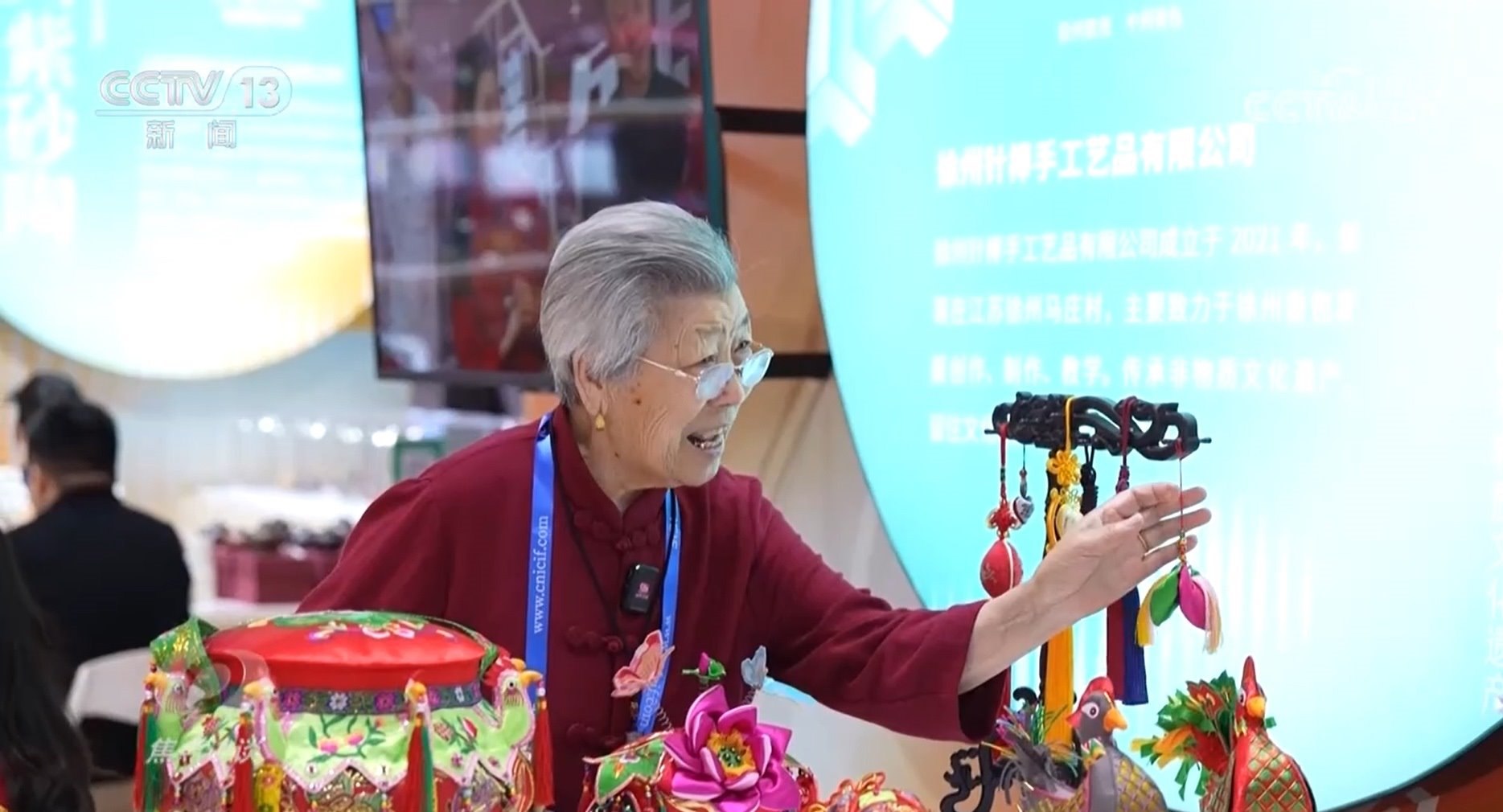 在江蘇展區(qū),一位正在做針線活的白發(fā)老人引人注目,她是江蘇省級非遺項目傳承人王秀英。王奶奶做的徐州香包名字叫作“針棒”,有著豐厚的文化蘊涵和文化價值,入選第一批國家級非物質(zhì)文化遺產(chǎn)擴(kuò)展項目名錄。這次和王奶奶一同來參展的還有她的孫女孫歌堯。在學(xué)習(xí)傳統(tǒng)工藝的同時,孫歌堯大膽創(chuàng)新,嘗試融入更多技法和材質(zhì)。