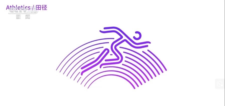 此外,杭州亞運會還發(fā)布了亞運歷史上首套動態(tài)體育圖標。同樣以“虹韻紫”作為底色,61個體育圖標在設計上延續(xù)了會徽的水系視覺,運動員看起來像是在扇形的水波紋上運動,但當所有圖標連接在一起時,又像是匯成了一條河流,奔流不息。