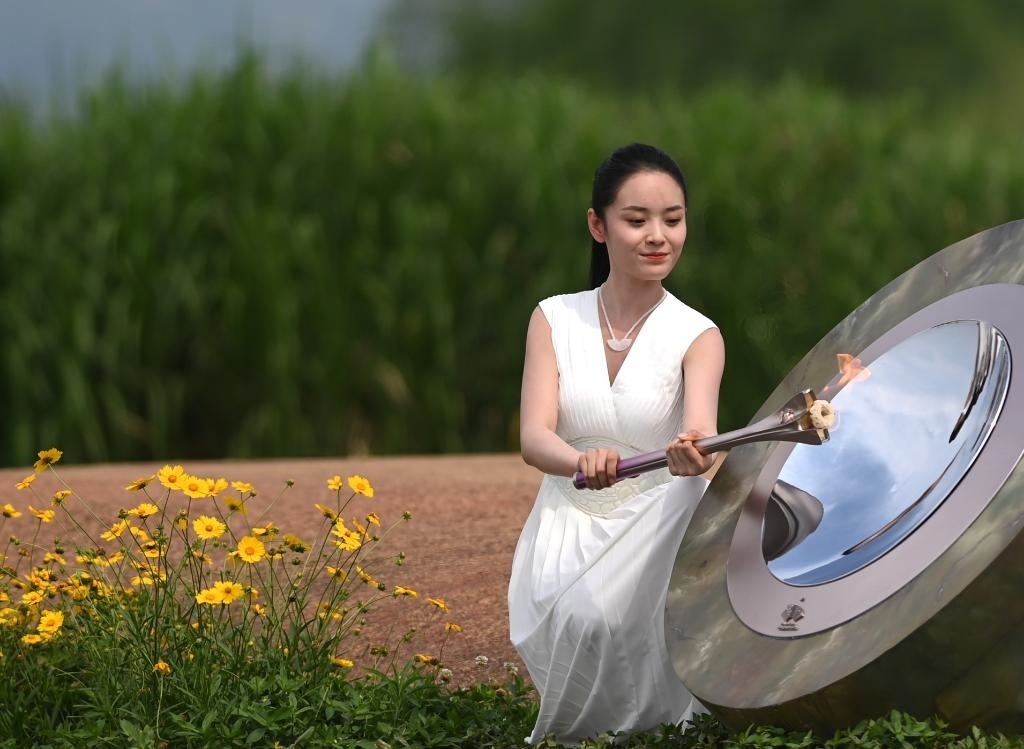 亞運火種在良渚古城遺址公園大莫角山