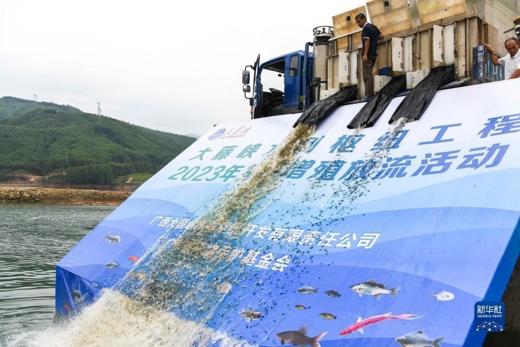 當(dāng)日,位于廣西桂平市的大藤峽水利樞紐工程舉行夏季魚苗放流活動(dòng)。新華社記者 曹祎銘 攝