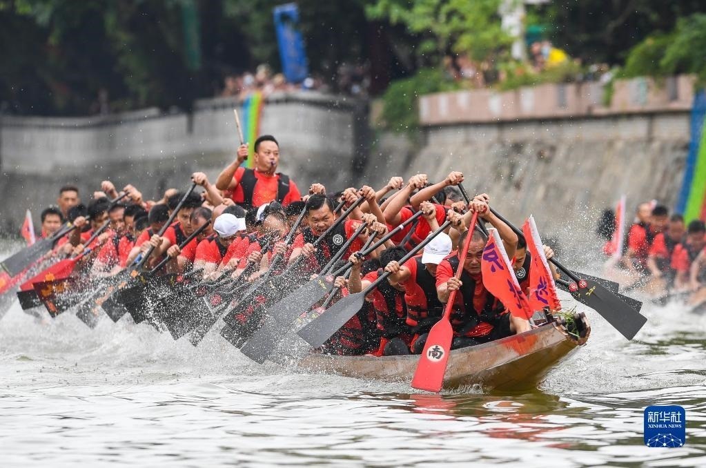 賽龍奪錦代表一種人生態(tài)度,更有著豐富的精神內(nèi)涵。對(duì)于車陂這樣的“城中村”而言,族人在端午回村里劃龍舟、吃龍船飯。龍舟如今既是留住文化記憶的重要載體,更是新都市如何留住老鄉(xiāng)愁的一份珍貴答卷。新華社記者 劉大偉 攝