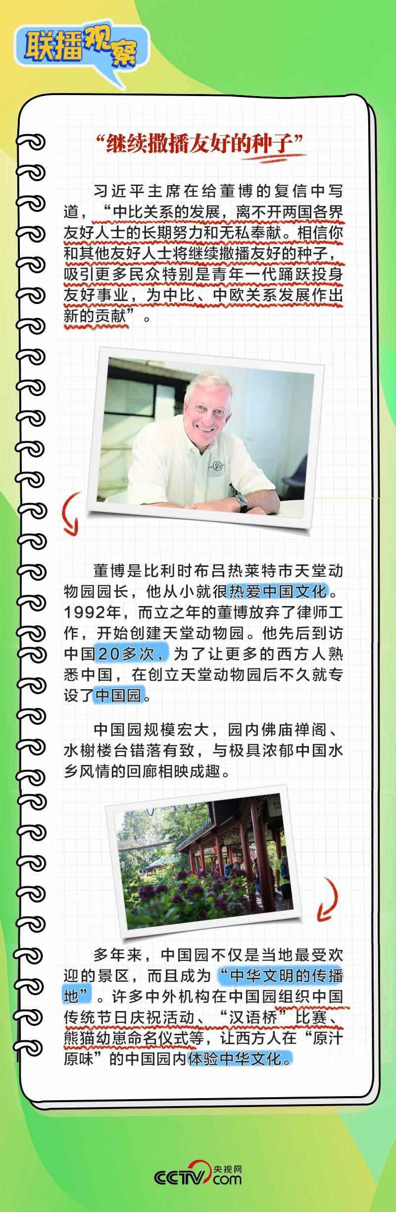 董博是比利時(shí)布呂熱萊特市天堂動(dòng)物園園長(zhǎng),他在給習(xí)主席致信中回顧了習(xí)主席和夫人彭麗媛2014年3月訪比期間出席天堂動(dòng)物園大熊貓園開園儀式的情景,表示中國(guó)園體現(xiàn)人與自然和諧共生理念,中國(guó)夢(mèng)和中國(guó)的發(fā)展繁榮永遠(yuǎn)是可共享的機(jī)遇。