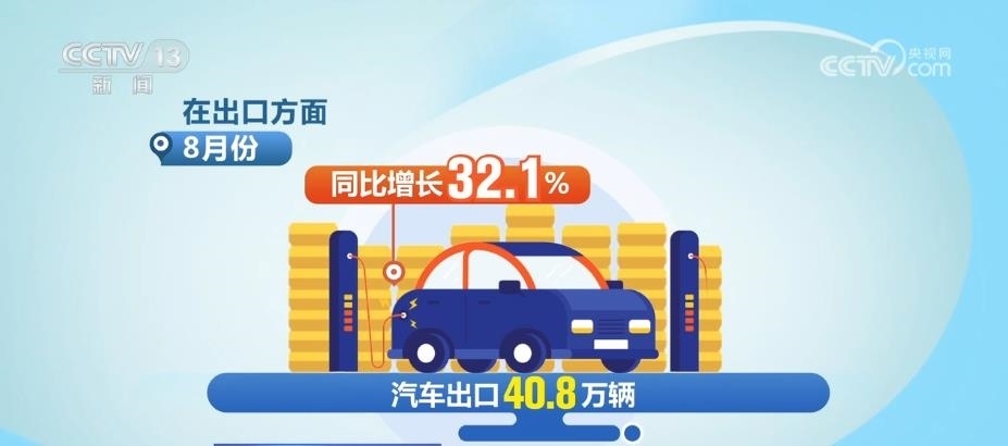 8月份汽車出口同比增長32.1% 新能源汽車市場占有率超30%