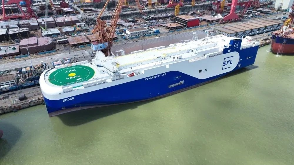 2023年9月12日,廣船國(guó)際建造的7000車(chē)雙燃料汽車(chē)運(yùn)輸船交付(無(wú)人機(jī)照片)。(中國(guó)船舶集團(tuán)廣船國(guó)際供圖)