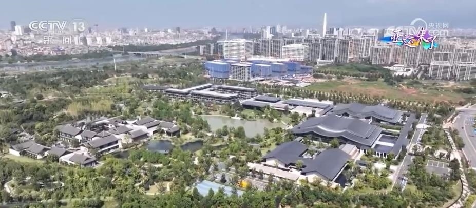 坡屋頂、灰瓦白墻,這里是金華的亞運分村。這個村的建設非常具有金華特色,各個建筑的外形吸取了江南造園精髓,灰瓦白墻、小橋流水,各式綠植樹木沿著水系有序分布。