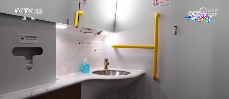 動(dòng)車組的4號(hào)車廂為無(wú)障礙車廂,有無(wú)障礙衛(wèi)生間、輪椅存放區(qū),還有盲文標(biāo)識(shí)以及相應(yīng)的設(shè)施設(shè)備,為乘客提供無(wú)障礙出行服務(wù)。