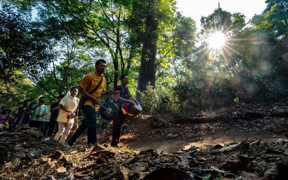 3月25日,景邁山茶農(nóng)前往古茶林準備舉行祭拜儀式。新華社記者 江文耀 攝