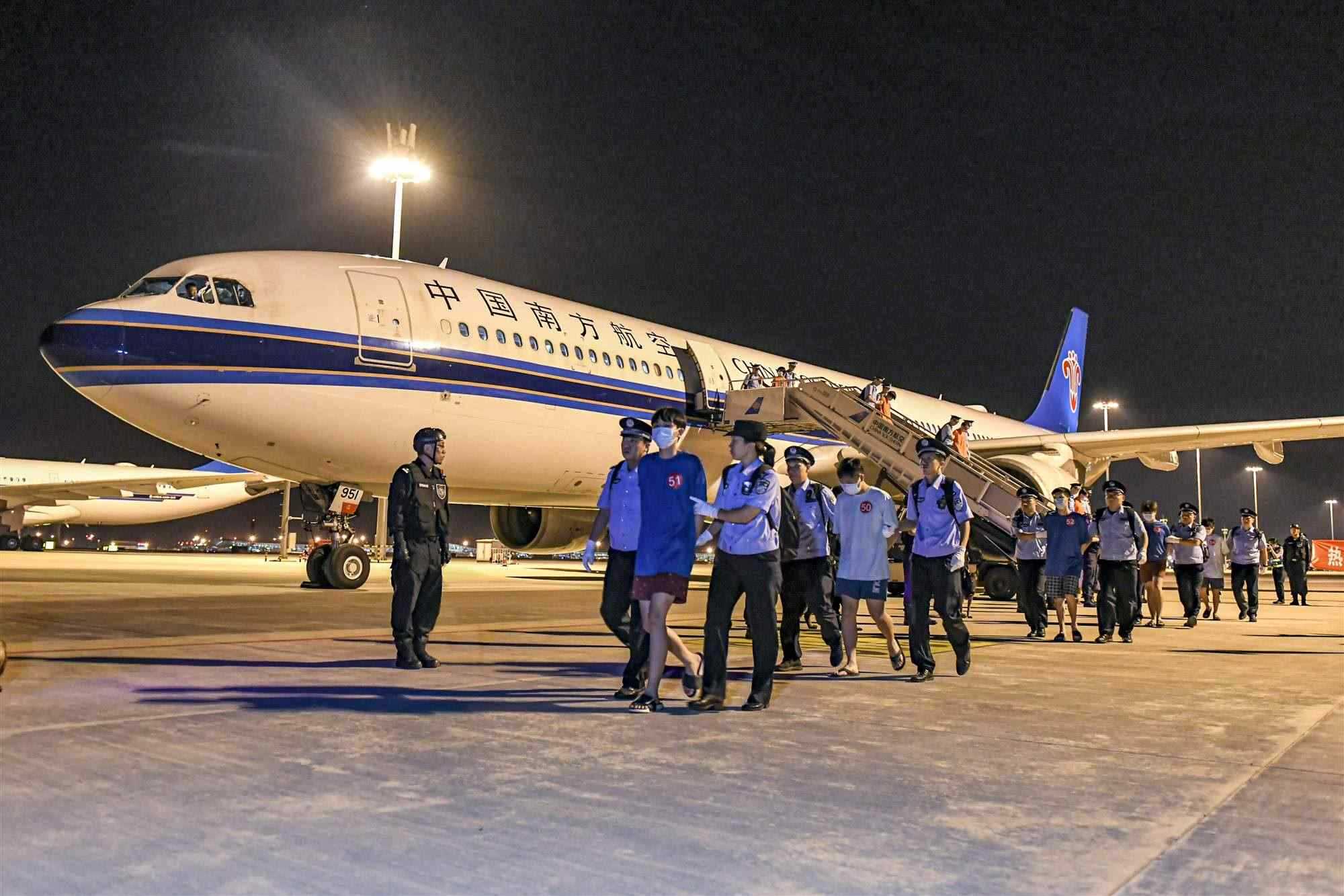 央視網(wǎng)消息:9月20日晚,隨著三架中國民航包機(jī)分別降落在北京大興國際機(jī)場和濟(jì)南遙墻國際機(jī)場,前期中國警方和印度尼西亞警方通過警務(wù)執(zhí)法合作抓獲的153名實施跨境裸聊敲詐的電信網(wǎng)絡(luò)詐騙犯罪嫌疑人,被北京、山東公安機(jī)關(guān)從印尼押解回國,涉及全國多個省市的百余起跨境裸聊敲詐案件成功告破。