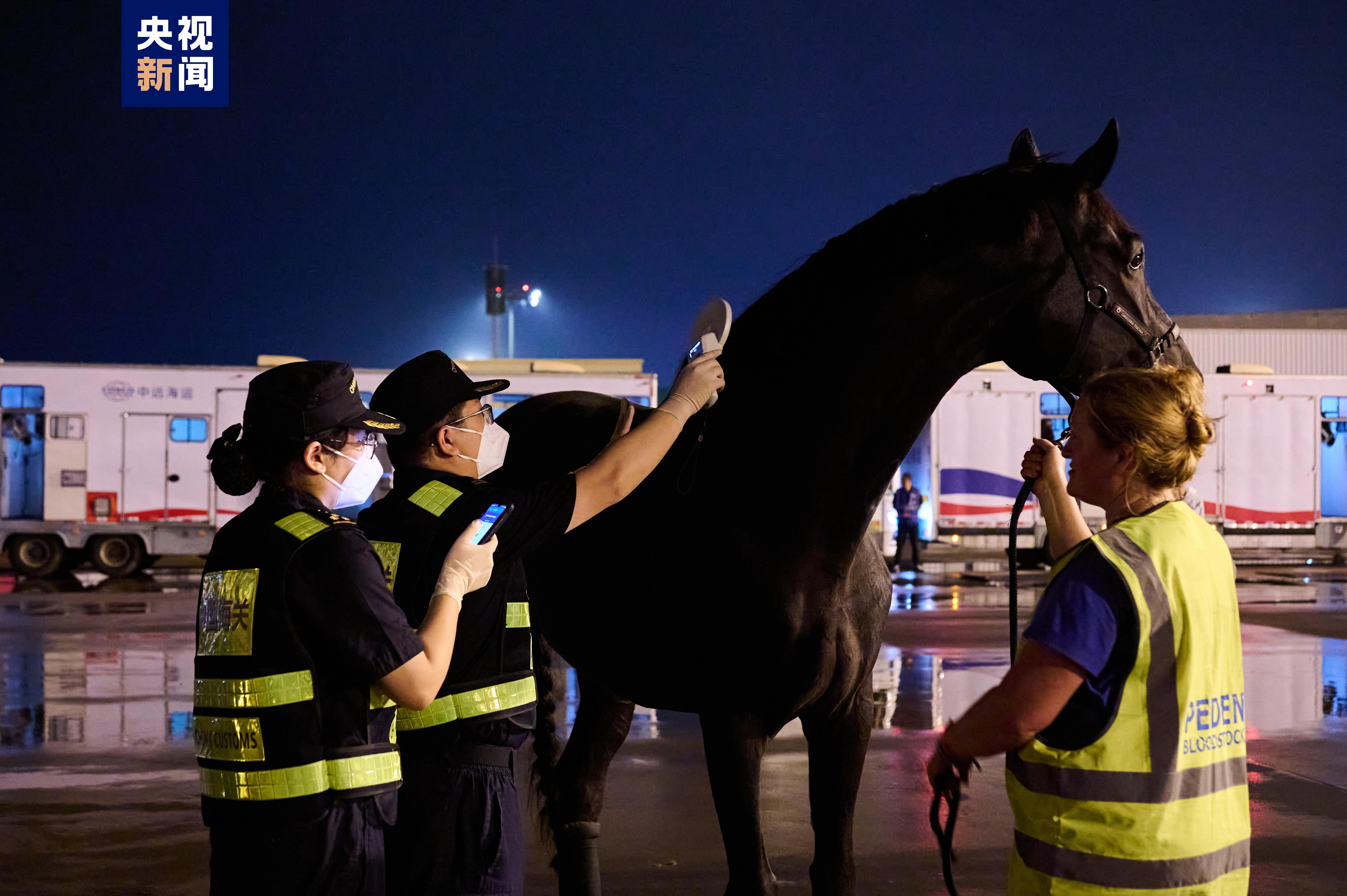 杭州亞運(yùn)會(huì)賽事總指揮部馬術(shù)項(xiàng)目管理指揮中心相關(guān)負(fù)責(zé)人表示,“這些參賽馬經(jīng)過(guò)了十幾個(gè)小時(shí)的長(zhǎng)途飛行,狀態(tài)比較疲憊,我們要在精準(zhǔn)查驗(yàn)、確保安全的同時(shí),盡可能縮短通關(guān)轉(zhuǎn)運(yùn)時(shí)間,保障馬匹福利?!睘榇耍贾菔捝絿?guó)際機(jī)場(chǎng)停機(jī)坪提前用圍擋設(shè)置了專門(mén)的馬匹裝卸轉(zhuǎn)運(yùn)場(chǎng)地,完成場(chǎng)地消殺,專用運(yùn)輸車輛和設(shè)備提前進(jìn)入。海關(guān)就近設(shè)置隨機(jī)人員通關(guān)專用通道,縮短人、馬分離時(shí)間,保障隨機(jī)人員與參賽馬同步通關(guān),并創(chuàng)新開(kāi)發(fā)參賽馬芯片識(shí)別程序,運(yùn)用“賽馬檢疫在線”智慧監(jiān)管系統(tǒng)大幅提升參賽馬身份驗(yàn)核效率。同時(shí),通過(guò)優(yōu)化流程、協(xié)同運(yùn)行,確保馬匹裝備、飼料、獸藥、馬醫(yī)療器械等隨機(jī)物資快速通關(guān)。參賽馬采用“快進(jìn)快出”的方式,在同等動(dòng)物衛(wèi)生條件下參賽,比賽結(jié)束后立即出境,實(shí)現(xiàn)賽馬“順利入境、健康參賽、安全返回”。