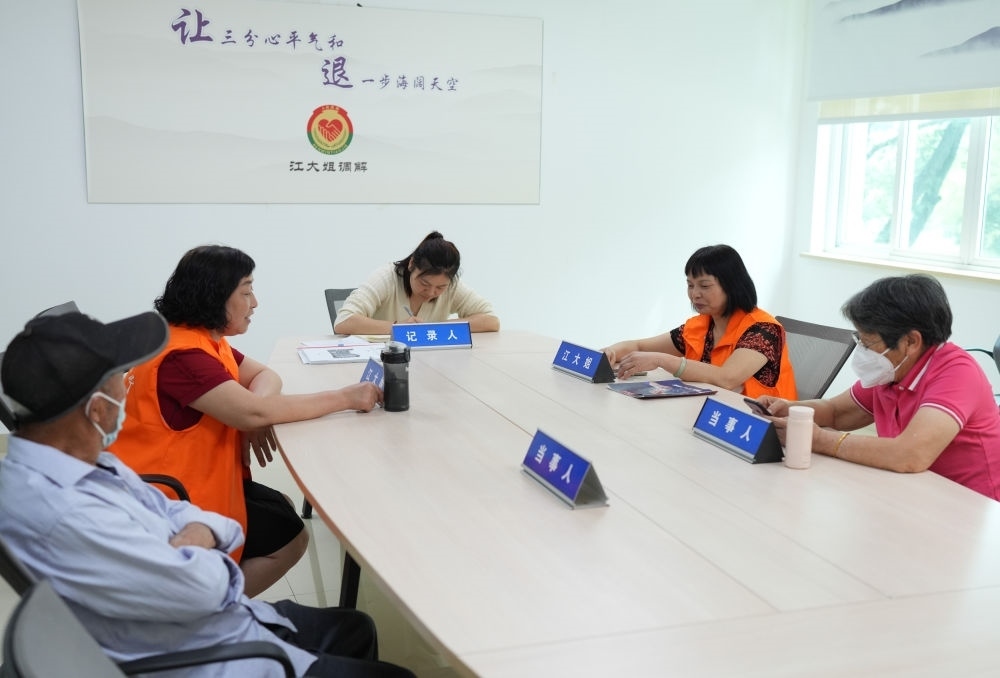 在浙江紹興諸暨市暨陽街道江新社區(qū)“江大姐”調(diào)解室,兩名調(diào)解員在為群眾進(jìn)行調(diào)解。這個(gè)調(diào)解工作室成員主要由女性組成,為周邊居民調(diào)解鄰里、家庭矛盾(2023年5月26日攝)。