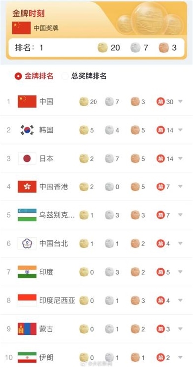 【8點(diǎn)見】亞運(yùn)首日中國隊(duì)斬獲20金,位列獎(jiǎng)牌榜第一