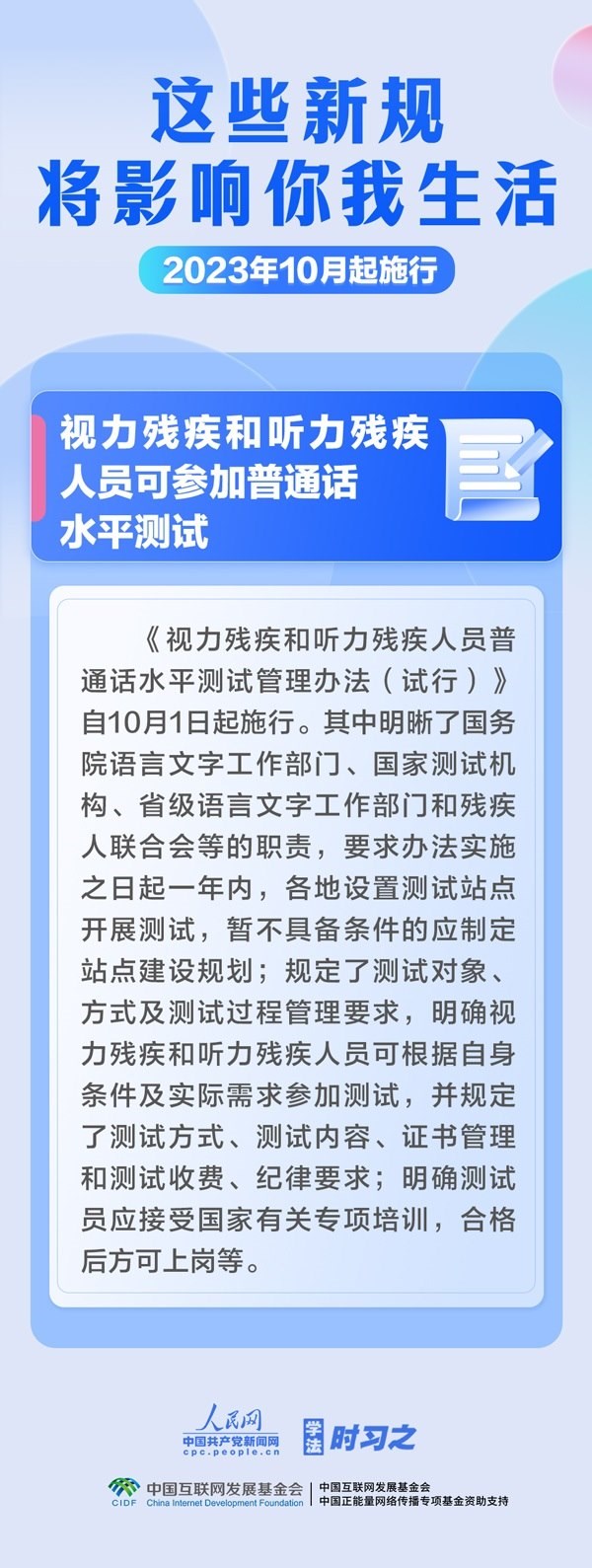 預(yù)防和制止假冒國企央企等違法行為;加強(qiáng)校外培訓(xùn)監(jiān)管;視力殘疾和聽力殘疾人員可參加普通話水平測試……10月,這些新規(guī)施行,將影響你我生活。