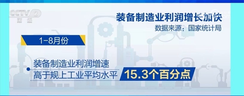 特別是裝備制造業(yè)利潤增長加快。1—8月份,裝備制造業(yè)利潤增速高于規(guī)上工業(yè)平均水平15.3個百分點。其中,電氣機(jī)械、鐵路船舶航空航天運輸設(shè)備行業(yè)利潤保持較高增速。