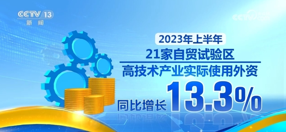 數(shù)據(jù)顯示,2022年,21個自貿(mào)試驗區(qū)以只占全國不到4‰的國土面積,實現(xiàn)了占全國18.41%的外商投資和17.9%的進出口。2023年上半年,21家自貿(mào)試驗區(qū)高技術(shù)產(chǎn)業(yè)實際使用外資同比增長13.3%。
