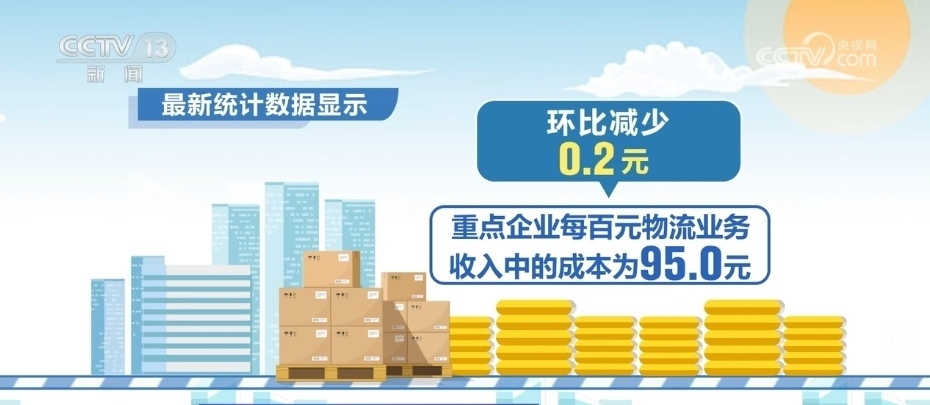 據(jù)介紹,近期,上游原材料價格趨緩,物流企業(yè)經(jīng)營成本壓力略有緩解。最新統(tǒng)計數(shù)據(jù)顯示,重點企業(yè)每百元物流業(yè)務收入中的成本為95.0元,環(huán)比減少0.2元。