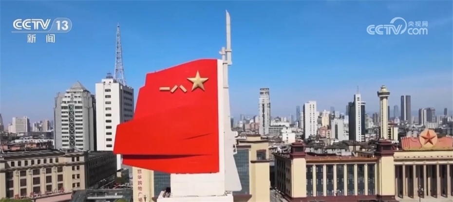 這里是江西省南昌市中心的八一廣場,八一南昌起義紀(jì)念塔巍然矗立,塔頂有一面用棗紅色磨光花崗石做成的八一軍旗,形象地表現(xiàn)南昌起義開始中國共產(chǎn)黨獨(dú)立領(lǐng)導(dǎo)武裝斗爭、人民軍隊(duì)從此光榮誕生這一偉大主題?!澳喜穷^的槍聲”如“劃破夜空的一道閃電”,從此軍旗獵獵向前進(jìn)。
