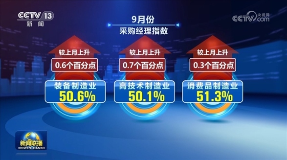 央視網(wǎng)消息(新聞聯(lián)播):中國物流與采購聯(lián)合會、國家統(tǒng)計局服務(wù)業(yè)調(diào)查中心今天(9月30日)公布,9月份中國制造業(yè)采購經(jīng)理指數(shù)重回50%以上的擴(kuò)張區(qū)間,經(jīng)濟(jì)恢復(fù)發(fā)展向好態(tài)勢明顯。