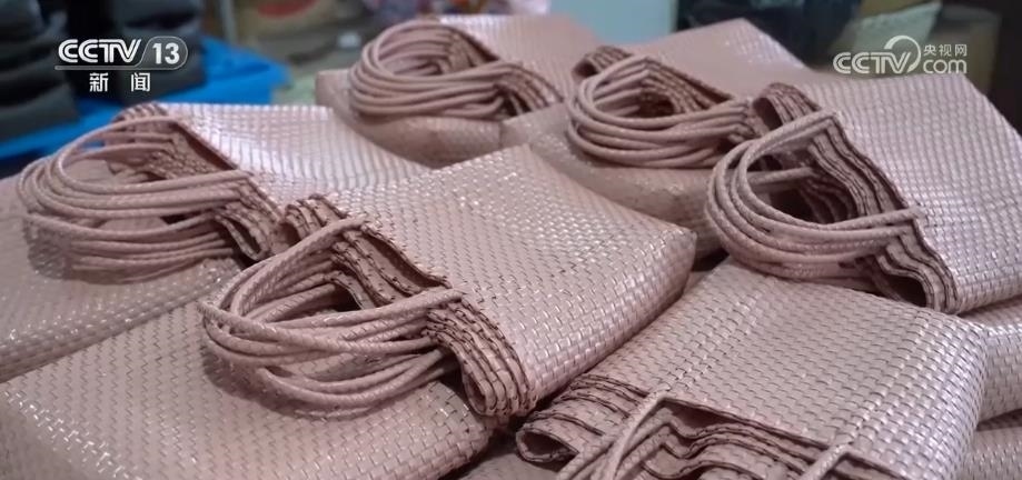 在青島平度新河鎮(zhèn)這家草編工藝品廠里,50多名來(lái)自周邊村莊的女工正在生產(chǎn)線上加緊趕制訂單。年初,工廠利用舊漁網(wǎng)、塑料瓶等廢棄物制成的再生素材,設(shè)計(jì)推出多款編織包,一經(jīng)推出就迅速斬獲大量訂單。