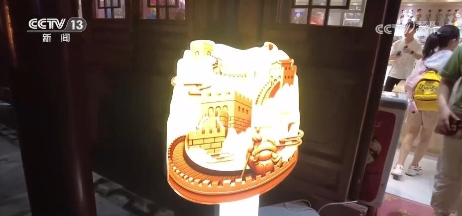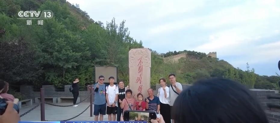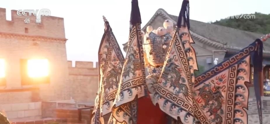 除了觀賞之外,八達(dá)嶺長城還為游客提供了豐富的消費(fèi)體驗(yàn)。在文化街區(qū)里,正在上演《夢回長城,八方來鶴》為主題的演出,游客們可以和京劇、地方歌舞的表演者互動(dòng)。絢爛的燈光表演則為古老的長城增添了不少現(xiàn)代感與時(shí)尚感。穿上漢服,買一面國旗,品嘗一下長城的文創(chuàng)雪糕,市集小店里洋溢著濃濃的煙火氣。
