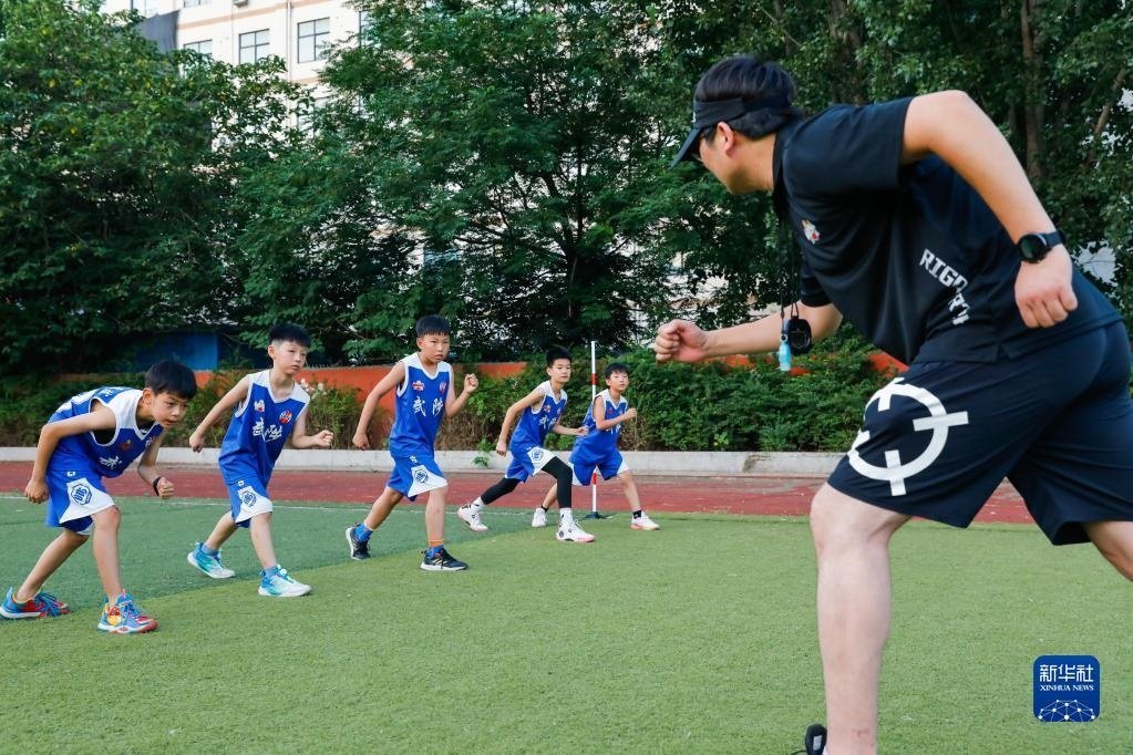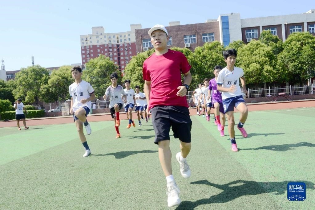 7月7日,在河南省焦作市武陟縣一家體育培訓(xùn)機(jī)構(gòu),教練指導(dǎo)學(xué)生練習(xí)跑步。