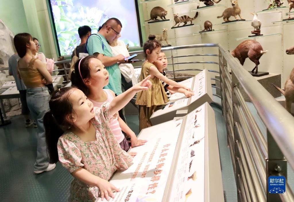 7月8日,小觀眾在江蘇常州博物館參觀動(dòng)物標(biāo)本。