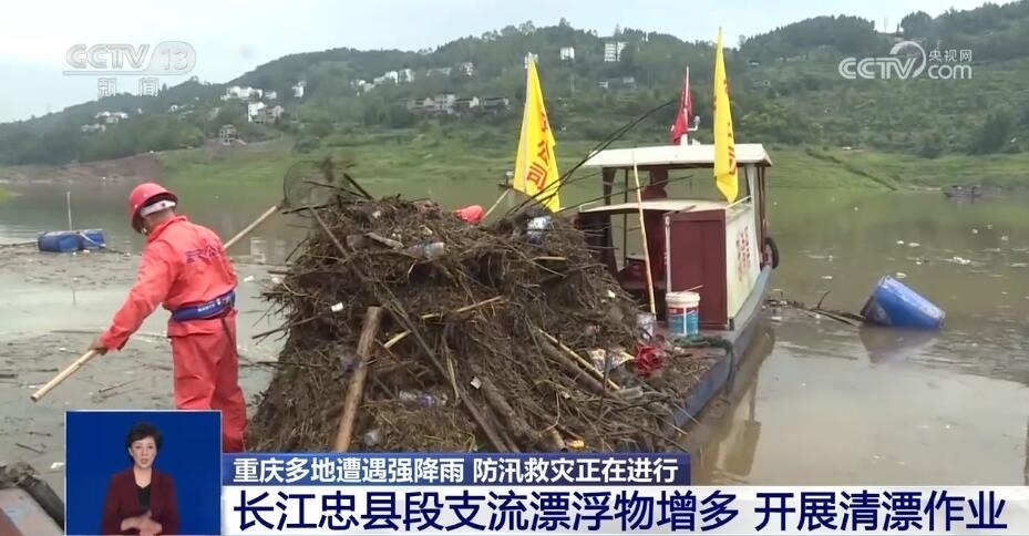 近段時間,重慶的強降雨天氣還導致長江重慶忠縣段各支流漂浮物增多。目前,多艘清漂船來回穿梭在江面上,分區(qū)域開展清漂作業(yè),清漂工人將江面漂浮物一一打撈上船,轉運上岸后再進行集中處理。7月3日以來,忠縣累計出動人工打撈船次80余船次,累計打撈垃圾約400余噸。此外,此輪長江洪峰過境忠縣后,長江忠縣段水位迎來上漲,當?shù)叵嚓P部門正密切關注水位變化。