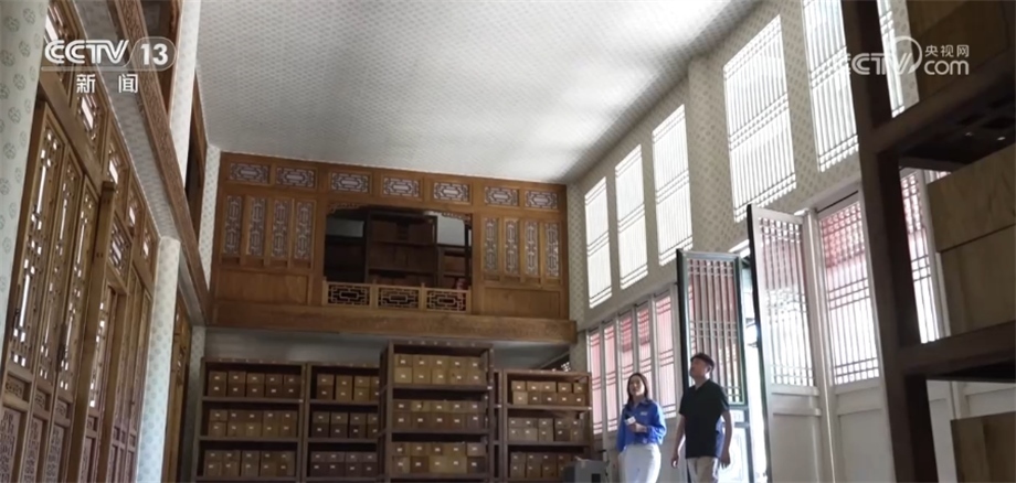 總臺記者 楊海靈:作為藏書樓,在設(shè)計建造時就考慮到了防火和防曬,所以不論是選址還是布局都蘊(yùn)藏了很多精心的設(shè)計。