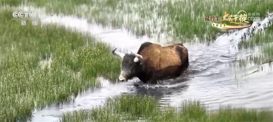 記者甚至拍到了成群的野牦牛在水中游嬉過(guò)河的畫(huà)面。高原的夏日里,趟過(guò)清涼的河水,想必也算是牛生的一樁美事。牛氣哄哄的野牦牛,此刻似乎多了幾分愜意,少了幾分“高原霸主”的威嚴(yán)。