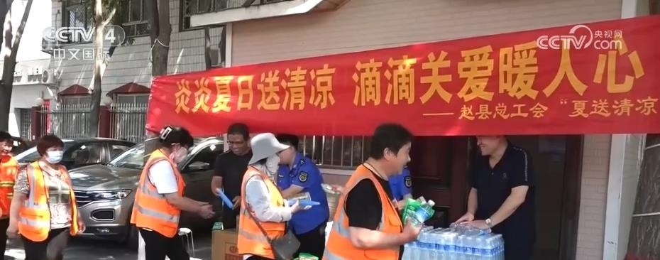 北京、河北、山東等地組織多批次“送清涼”“送健康”活動(dòng)。在服務(wù)驛站配備飲用水、藿香正氣水等防暑降溫物資,方便外賣(mài)小哥、外來(lái)游客、一線環(huán)衛(wèi)工人等避暑納涼。
