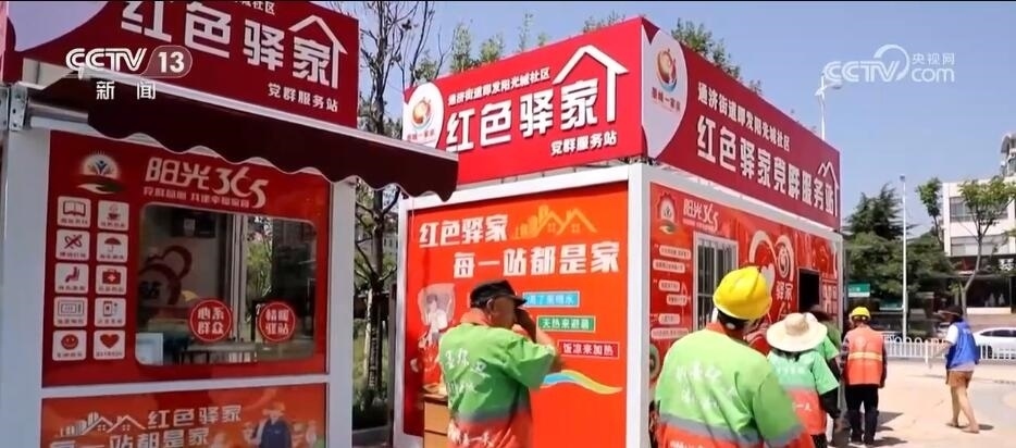 在青島市即墨區(qū),34處新啟用的“紅色驛家”黨群服務(wù)站,成了環(huán)衛(wèi)工人們歇腳的新去處。這些“紅色驛家”配備空調(diào),可以提供應(yīng)急充電、免費(fèi)飲水、急救藥箱、愛心雨傘等13項(xiàng)服務(wù)。