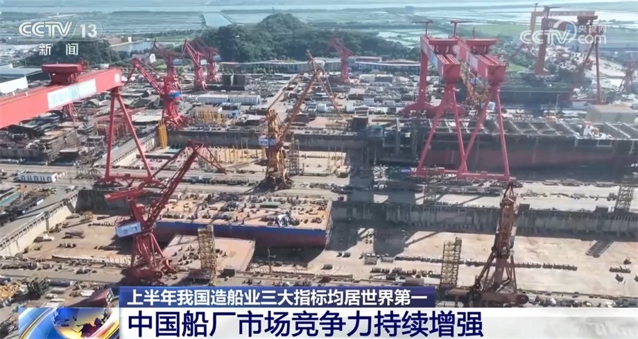 央視網(wǎng)消息:工業(yè)和信息化部今天(7月12日)發(fā)布我國造船業(yè)最新數(shù)據(jù),上半年我國造船業(yè)三大指標均位居世界第一;新接訂單量的國際市場份額超過了70%,實現(xiàn)了我國造船業(yè)國際市場新接訂單量的新紀錄。?