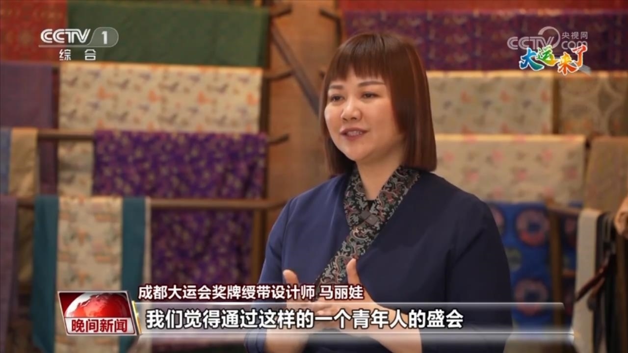 成都大運(yùn)會(huì)獎(jiǎng)牌綬帶設(shè)計(jì)師 馬麗娃:這個(gè)體育賽事其實(shí)是一個(gè)橋梁,通過(guò)這樣一個(gè)青年人的盛會(huì),把我們這樣一個(gè)優(yōu)秀傳統(tǒng)文化,用一個(gè)肉眼可見(jiàn)的形式把它傳遞出去,我覺(jué)得這是非常棒的一個(gè)形式。