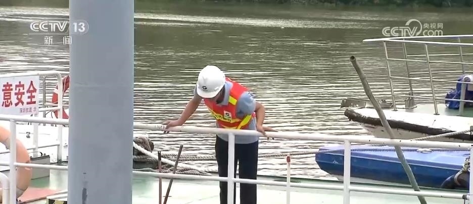 在深圳河皇崗碼頭段,水務(wù)部門的工作人員正在進(jìn)行臺(tái)風(fēng)前的巡查工作。臺(tái)風(fēng)來臨前,河流船只必須全部回港避險(xiǎn)并進(jìn)行加固處理,沿河的各項(xiàng)工程必須停工。