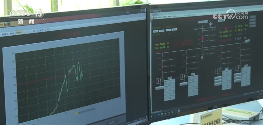 總臺記者 劉澤耕:我們現(xiàn)在來到的是龍羊峽水光互補(bǔ)光伏電站中控室,這塊屏幕上正在變化的數(shù)據(jù)是光伏電站發(fā)電的實(shí)時(shí)數(shù)據(jù)。光伏發(fā)電存在間歇性、波動(dòng)性和隨機(jī)性等問題。在夜間,光伏電站出力為零,遇到陰雨天氣,云層遮擋住太陽,光伏電站發(fā)電能力也會迅速下降。這些因素都會導(dǎo)致光伏發(fā)電產(chǎn)生的電流呈現(xiàn)鋸齒狀,不僅會對電網(wǎng)造成沖擊,而且電壓不穩(wěn)定也會影響生產(chǎn)生活。而龍羊峽水電站水光互補(bǔ),完美解決了光伏發(fā)電“靠天吃飯”的難題。