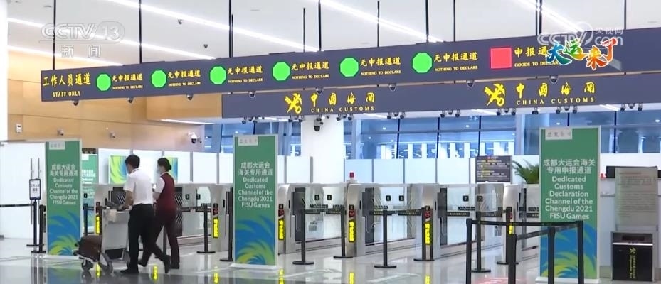 成都海關(guān)所屬雙流機場海關(guān)旅檢二科科長 李霄林:為了應(yīng)對大運會人員集中通關(guān)的情況,我們設(shè)置了6條大運會海關(guān)專用通道,并對集成了手提行李機檢等8項功能的智能通道進行了升級,由原來的“單通道”升級為“雙通道”,單人的通關(guān)速度提升了40%。