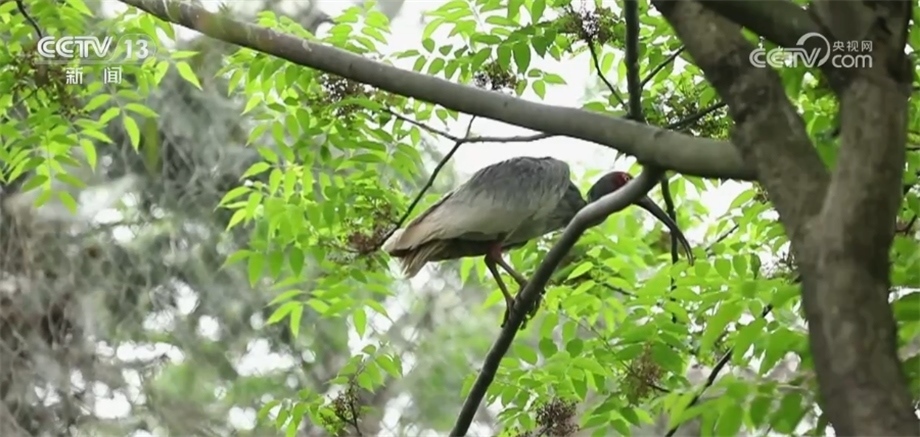 記者通過野外放置的視頻探頭看到,今年野外孵化的朱鹮幼鳥個體大小接近成鳥,已在野外正常棲息覓食、自由飛翔。