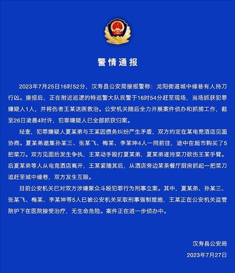 ·湖南漢壽警方通報(bào)“多人當(dāng)街持刀互砍”:債務(wù)問(wèn)題引發(fā),已刑事立案。