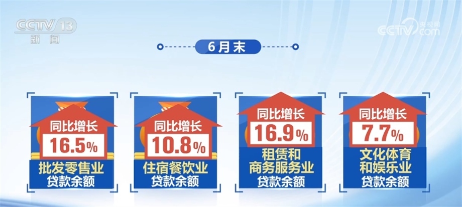 數(shù)據(jù)顯示,6月末,批發(fā)零售業(yè)、住宿餐飲業(yè)、租賃和商務(wù)服務(wù)業(yè)、文化體育和娛樂業(yè)貸款余額同比分別增長(zhǎng)16.5%、10.8%、16.9%、7.7%,信用卡、汽車和其他綜合消費(fèi)貸款比年初增加7100多億元,有力支持了相關(guān)領(lǐng)域消費(fèi)恢復(fù)發(fā)展。