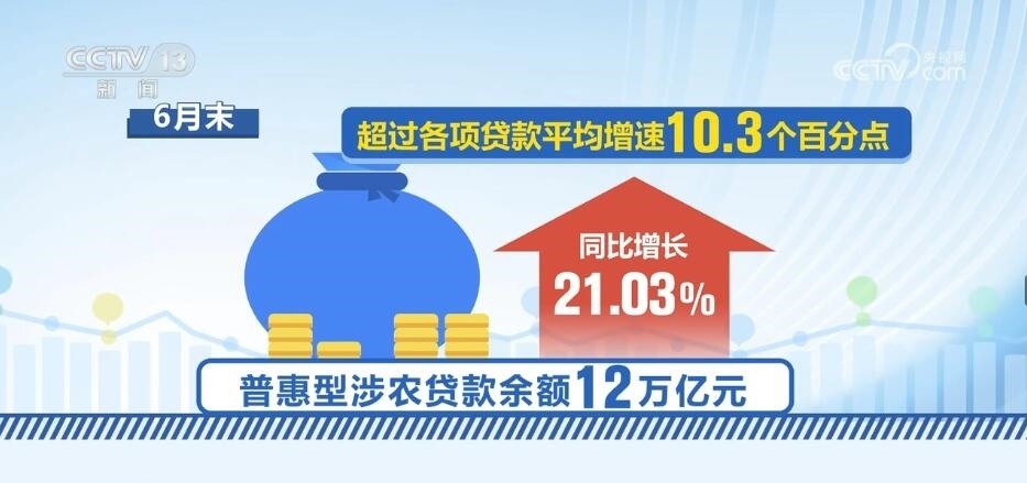 上半年,涉農(nóng)貸款余額也保持較快增長。6月末,全國涉農(nóng)貸款余額54.64萬億元,同比增長16.0%。其中,普惠型涉農(nóng)貸款余額12萬億元,同比增長21.03%,超過各項(xiàng)貸款平均增速10.3個(gè)百分點(diǎn)。