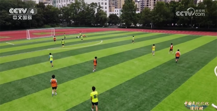 總臺央視記者 駱魏:在這個(gè)舉辦“村超”的球場,每周五、六、日都會進(jìn)行多場足球比賽,而在其他時(shí)間,這里也同樣熱鬧。我們看到有在球場上練球的大人小孩,也有現(xiàn)場駐場歌手的表演吸引了大量合唱的觀眾,還有熱熱鬧鬧跳著廣場舞的當(dāng)?shù)厝罕姟!按宄本蹟n了人氣,為這里注入了活力。