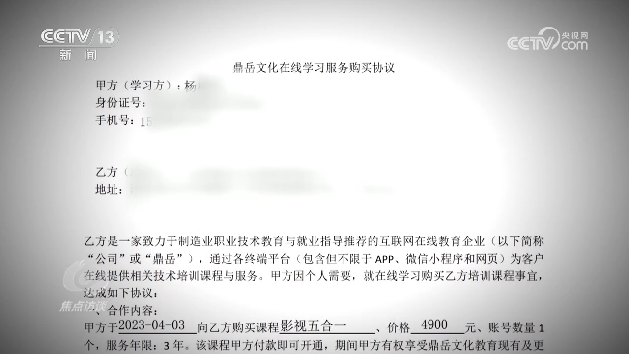 然而,這次鼎岳公司的工作人員也沒再用推薦兼職來安撫他,而是直接拿出了培訓合同,上面寫著“自用戶繳費兩個月后,鼎岳將不再為用戶提供退費服務?!笨粗@份自己簽了字的培訓合同,小楊意識到退費難了。
